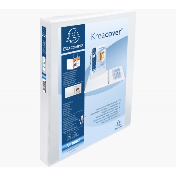 CLASSEUR EXACOMPTA EN PVC 2 POCHES PERSONNALISABLE A4 D50 DOS 78MM BLANC