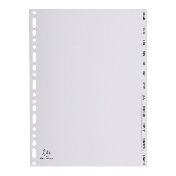 INTERCALAIRE DE SÉPARATION POLYPROPYLÈNE EXACOMPTA MENSUELLE DE 12 POSITIONS – A4