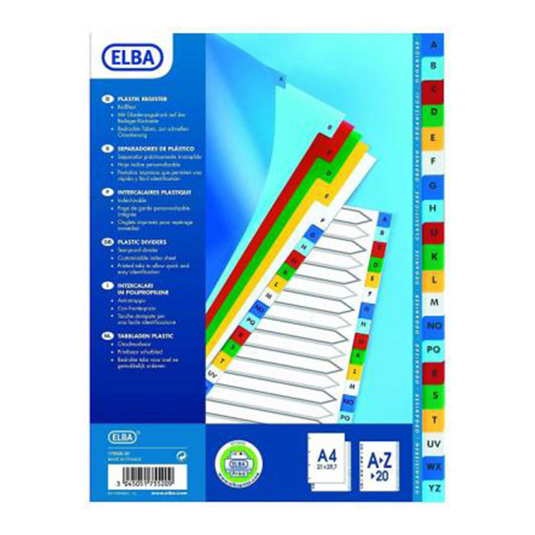INTERCALAIRE DE SÉPARATION POLYPROPYLÈNE ELBA ALPHABÉTIQUE DE 20 POSITIONS – A4
