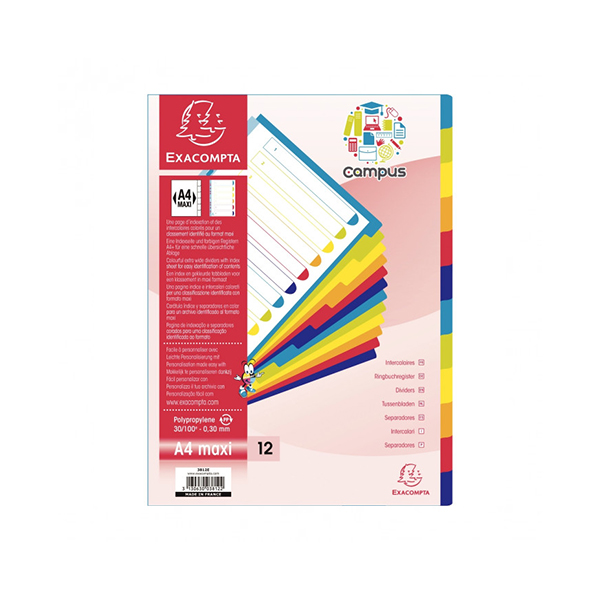 INTERCALAIRE DE SÉPARATION POLYPROPYLENE EXACOMPTA DE 12 POSITIONS – A4