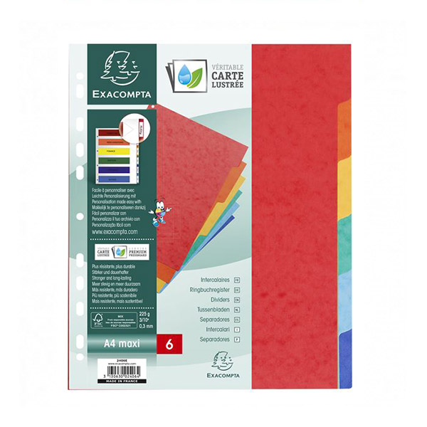 INTERCALAIRE DE SÉPARATION CARTONNÉE EXACOMPTA DE 6 POSITIONS – A4